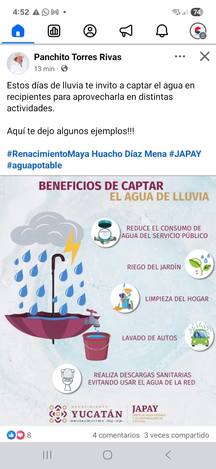 MÉRIDA, Yucatán.- De las estufas del bienestar llega a Yucatán el agua de lluvia del bienestar, de la mano del peor director que ha tenido la Japay en toda su historia.