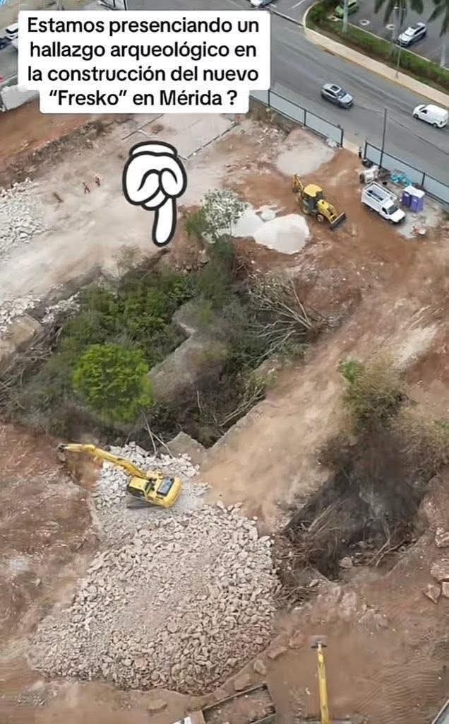 MÉRIDA, Yucatán.- En redes sociales difundieron un posible hallazgo arqueológico en el terreno donde se construye un nuevo supermercado, de la cadena Fresko de La Comer, en el norte de Mérida.