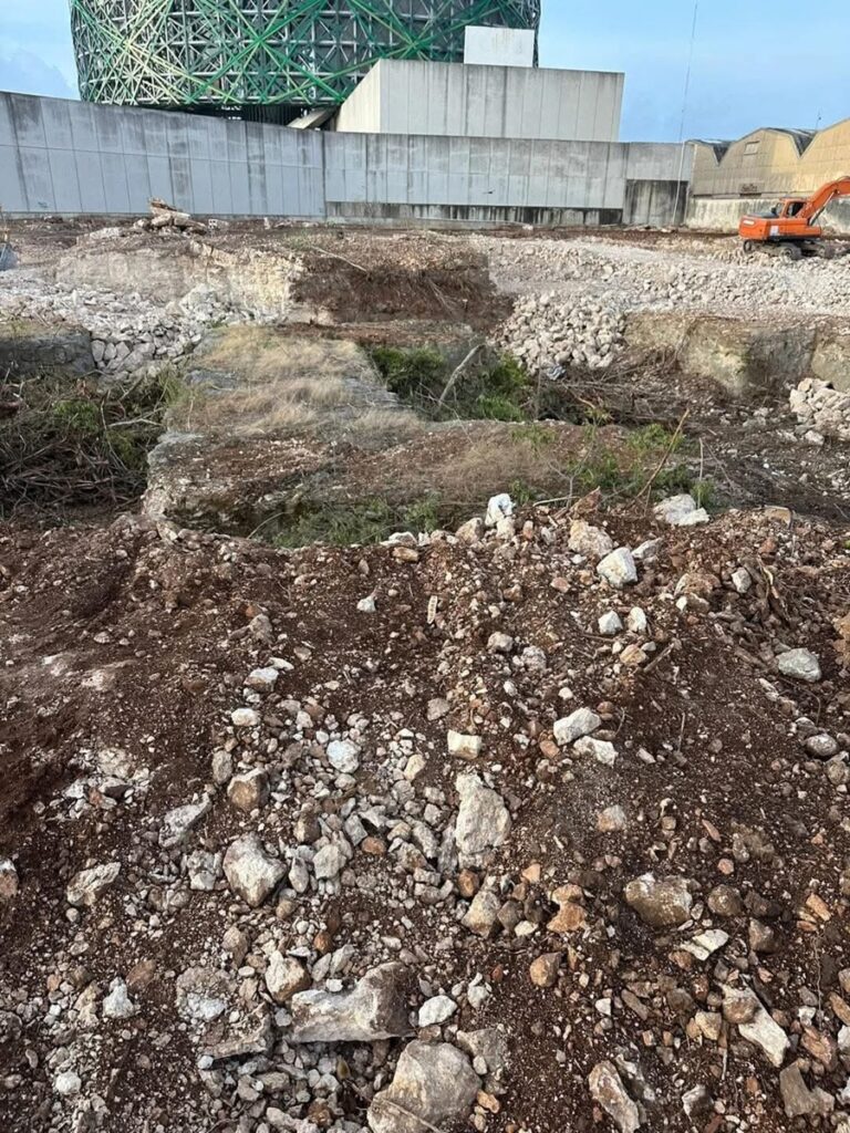 Mario Mendicuti compartió fotos de lo que parece ser un basamento maya que se descubrió tras excavar en el predio donde estará la nueva tienda, a un costado de Costco, en los antiguos terrenos de Cordemex.