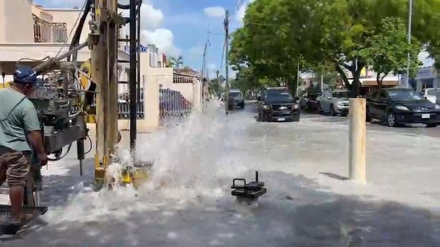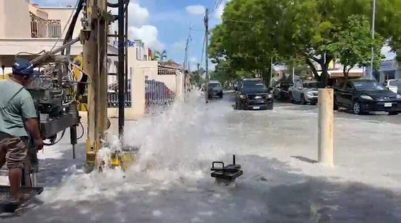 MÉRIDA, Yucatán.- La Dirección de Obras Públicas del Ayuntamiento de Mérida informó que esta madrugada; durante los trabajos de perforación de un pozo en la avenida 7 de Pensiones -a la altura de la sede parroquial- la empresa encargada de los trabajos perforó por error, un tubo de alimentación de agua potable que surte a la zona.