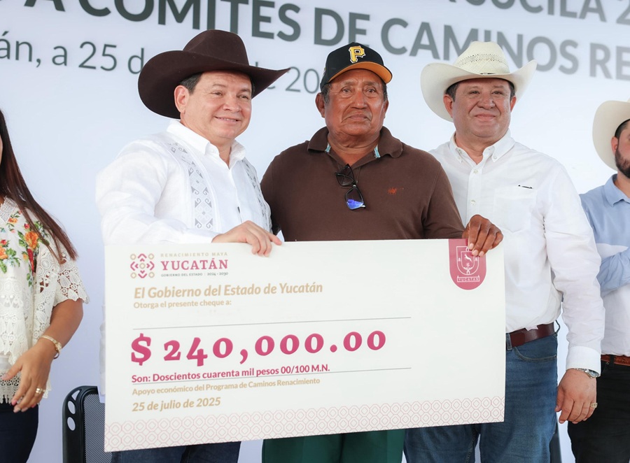 “Hoy venimos a dar buenas noticias a Sucilá. Entregamos cheques para los Caminos Renacimiento porque sabemos que sin buenos caminos no hay progreso. Por eso vamos a invertir en el camino Chan–Panabá, hasta por 8 kilómetros, entregando recursos suficientes para su reconstrucción. Estamos destinando 80 mil pesos por cada kilómetro, lo que representa una inversión de 640 mil pesos para este tramo”, indicó Díaz Mena.