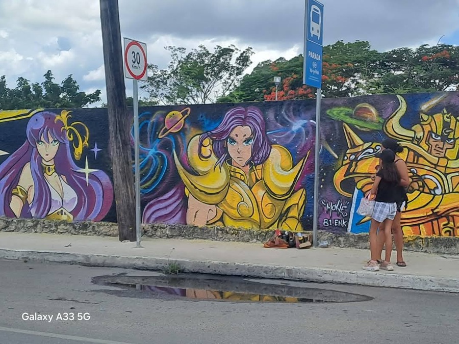 La obra, titulada «La Vieja Ezcuela», fue hecha por artistas locales como homenaje a una generación que creció viendo las épicas batallas del anime japonés Saint Seiya. Con vibrantes colores y gran nivel de detalle, los personajes reviven en este espacio, despertando nostalgia entre alumnos, maestros y transeúntes.