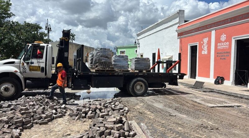 Mérida, Yucatán.- La Dirección Obras Públicas del Ayuntamiento de Mérida trabaja en la reparación de las calles del área de la Ermita de Santa Isabel, cuyos adoquines requieren de mantenimiento y nivelación para devolver su trazado original.