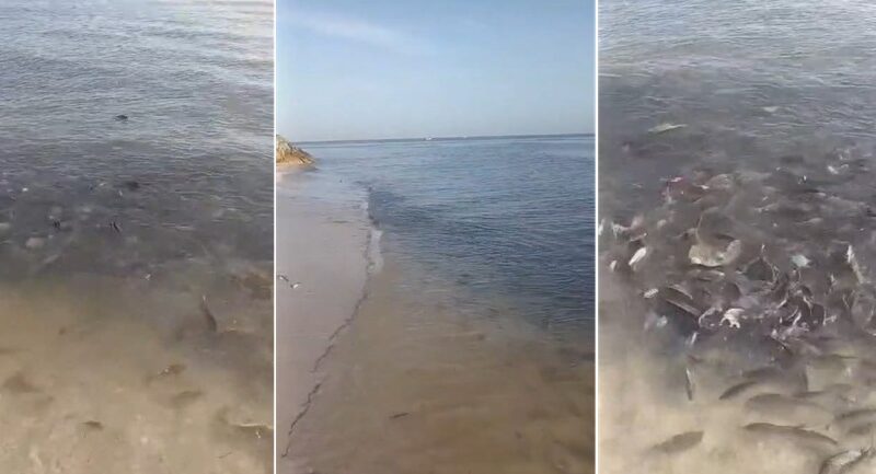 Muchos pensaron que se darían un festín de mariscos, pero las autoridades pidieron que la gente no consuma las especies que recalan en la orilla huyendo de la marea roja.