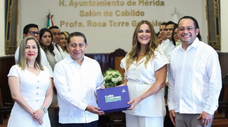 MÉRIDA, Yucatán.- En acto solemne ante el Cabildo de Mérida, la presidenta municipal Cecilia Patrón Laviada entregó el documento oficial que integra el Primer Informe de Trabajo “1 Año Contigo”, que contiene las acciones realizadas en la administración municipal.