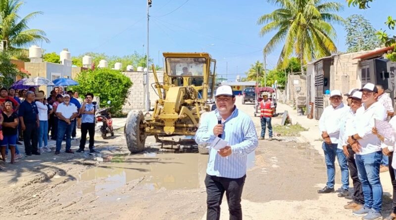 KANASÍN, Yucatán.- El alcalde Edwin Bojórquez Ramírez abanderó hoy por la mañana el inicio de los trabajos de rehabilitación de 1,018 mt2 de calles en el fraccionamiento Jardines de San Pedro, esto como parte del programa «Unidos construyendo calles dignas y seguras».
