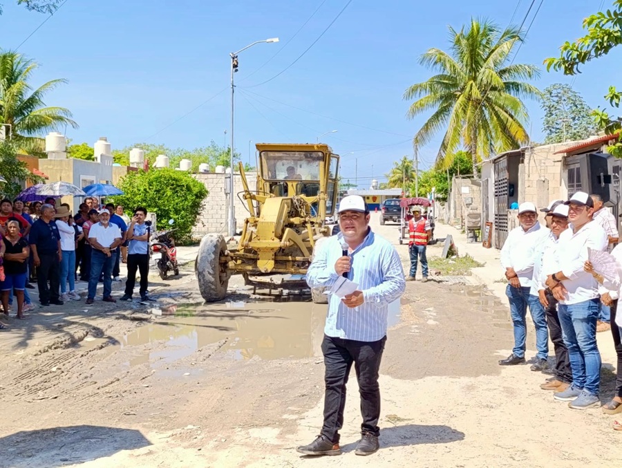 Edwin Bojórquez abandera inicio de trabajos de mejoramiento de calles en Jardines de San Pedro, Kanasín