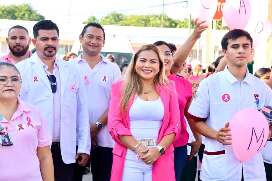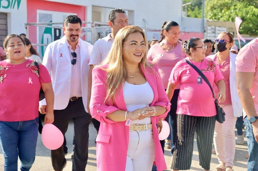 KANASÍN, Yucatán.- En el marco del Mes Rosa, y al participar en diferentes actividades, la presidenta del DIF de Kanasín, Raquel Balam Rocha de Bojórquez, destacó la importancia de generar conciencia entre las mujeres para que, no solo en estas fechas sino durante todo el año, se cuiden y se autoexploren para prevenir el cáncer de mama.