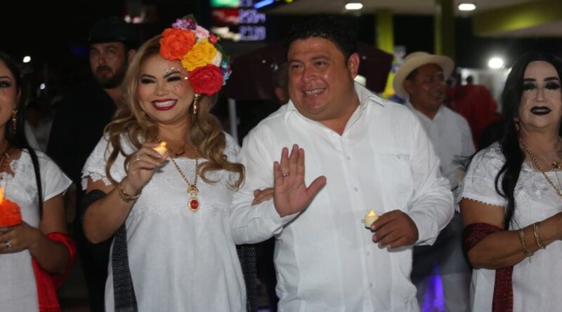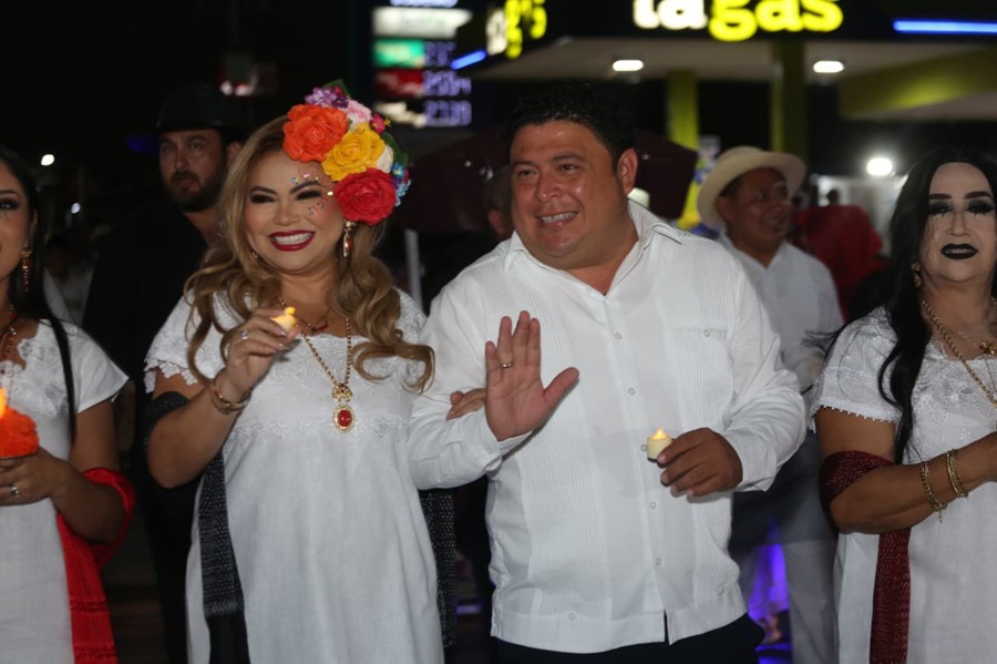 KANASÍN, Yucatán.- Catrinas, esqueletos, mestizas que retornaron de la muerte, ánimas, entre otros, participaron esta noche en el Paseo de las Ánimas en Kanasín, contingente que fue encabezado por el alcalde Edwin Bojórquez Ramírez y su esposa y presidenta del DIF de Kanasín, Raquel Balam Rocha de Bojórquez.
