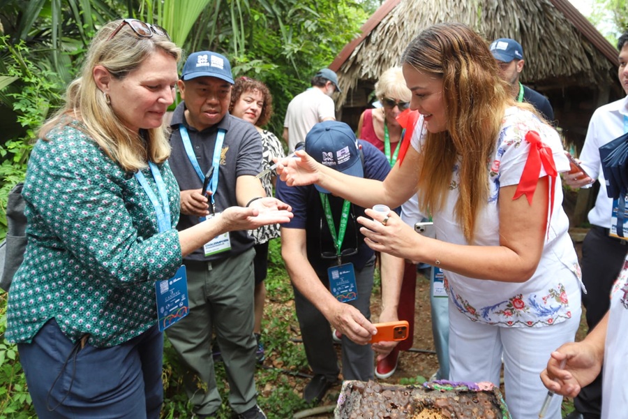Asimismo resaltó el proyecto familiar liderado por las hermanas Mirtha y Bertha Pool, quienes dijo, mantienen viva la tradición milenaria del cuidado de la abeja melipona (Melipona beecheii), una especie nativa de gran importancia ecológica, cultural y medicinal para el pueblo maya