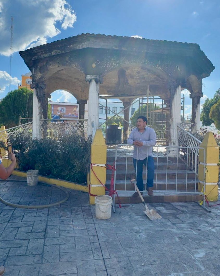 KANASÍN, Yucatán.- El alcalde Edwin Bojórquez Ramírez anunció este mediodía el inicio de los trabajos de rehabilitación del quiosco del parque principal, luego de que se quemara en días pasados por un petardo que cayó en el nacimiento de paja instalado en el sitio.