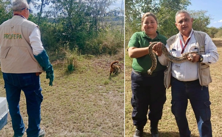 Policía Ecológica de Kanasín libera un tejón, un águila caminera y una boa