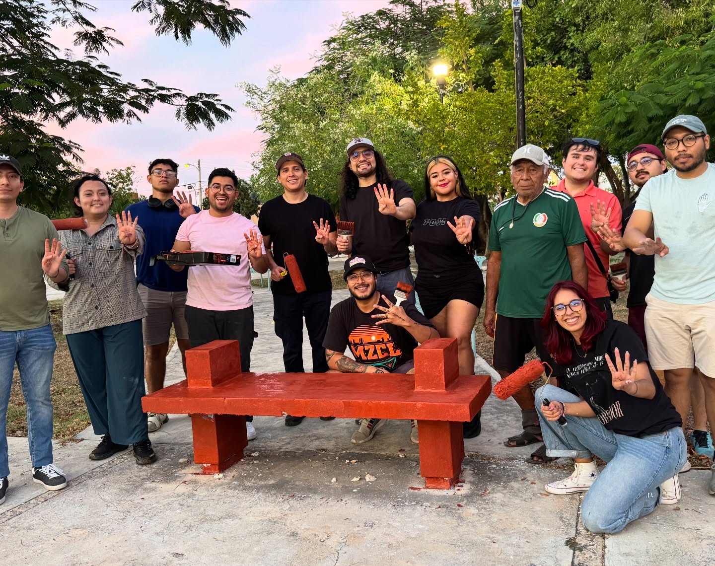 MÉRIDA, Yucatán.- Como si se tratara de alguna obra faraónica de su gurú López Obrador, las juventudes de Morena en Mérida celebraron con bombo y platillo que pintaron de color guinda… ¡¡¡una banca!!!