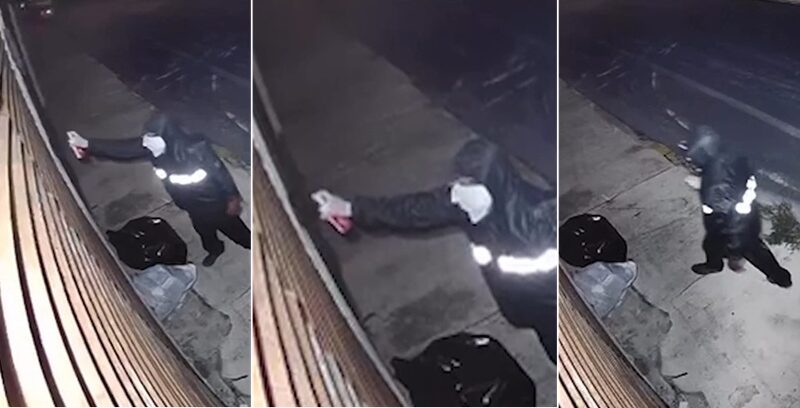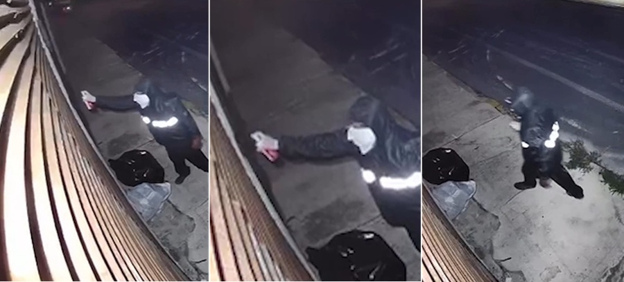 En el video que difundieron se ve a un hombre con chamarra, capucha y el rostro cubierto recorriendo la zona residencial durante la noche.