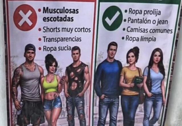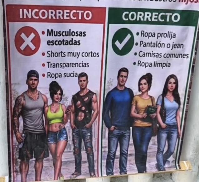 MÉRIDA, Yucatán.- ¿En qué condiciones llegarán los padres de familia como para que en la escuela primaria Antonio Bustillos Carillo, en Polígono 108, hayan tenido que colocar un aviso donde se les exhorta a acudir con “vestimenta apropiada”?