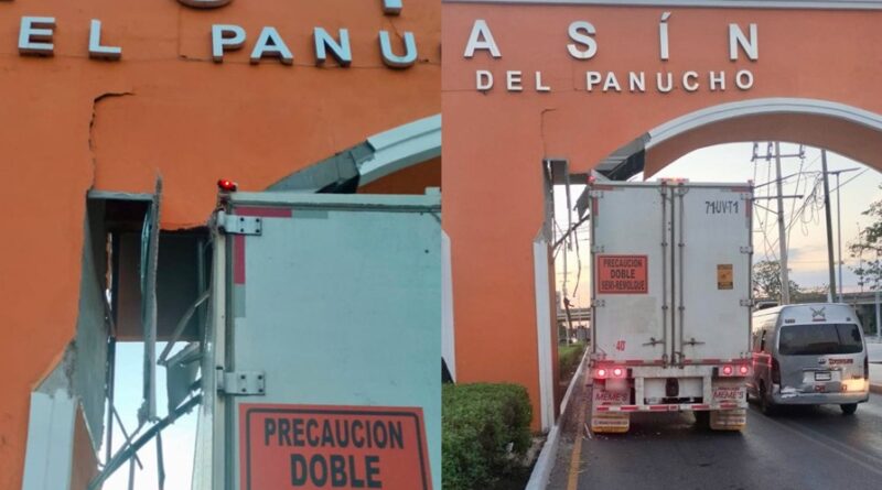 Tráiler daña el arco de bienvenida a Kanasín: detienen al chofer