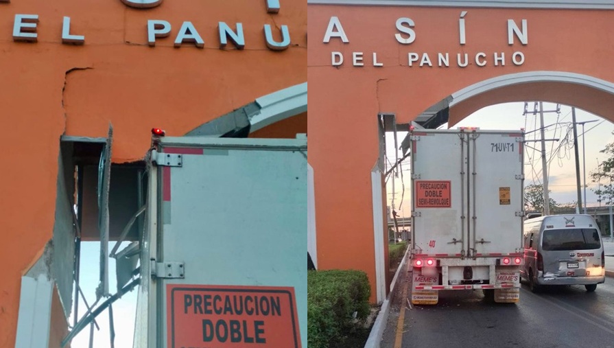 Los hechos ocurrieron aproximadamente a las 18.15 horas, cuando el conductor de un tráiler modelo 2005 color blanco circulaba sobre la calle 69 y al llegar frente al Arco de Bienvenida de Kanasín se orilló demasiado al camellón central, y la caja que remolcaba colisionó contra la estructura.